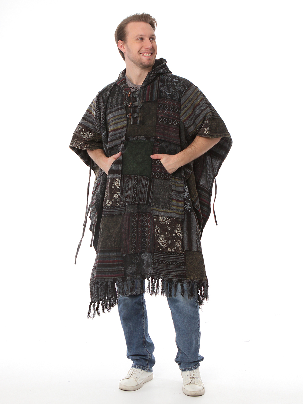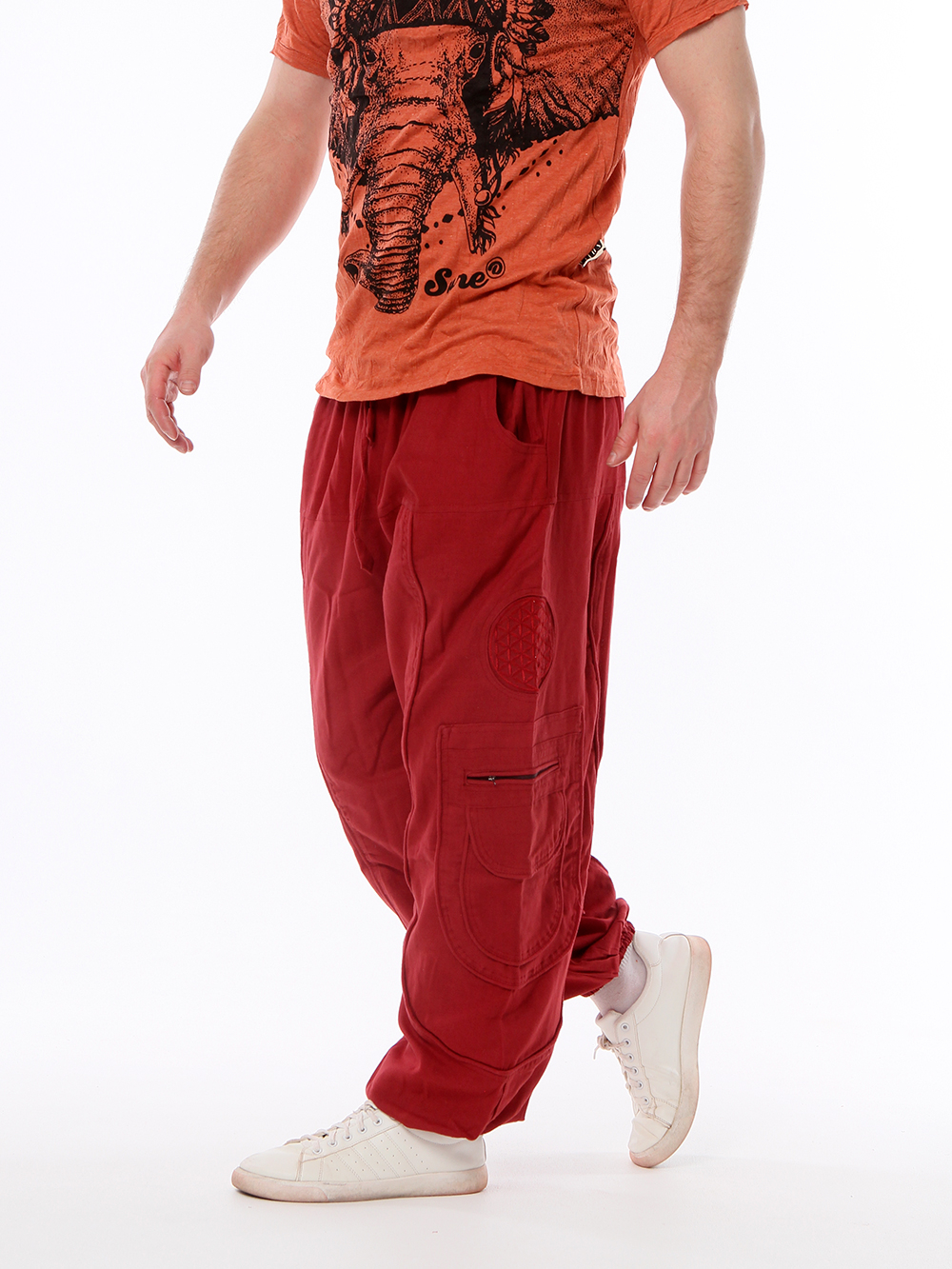 Материал: легкий 100% хлопок. Карманы: есть, два боковых и по одному большому карману на липучке на каждой штанине. Длина: 98 см.