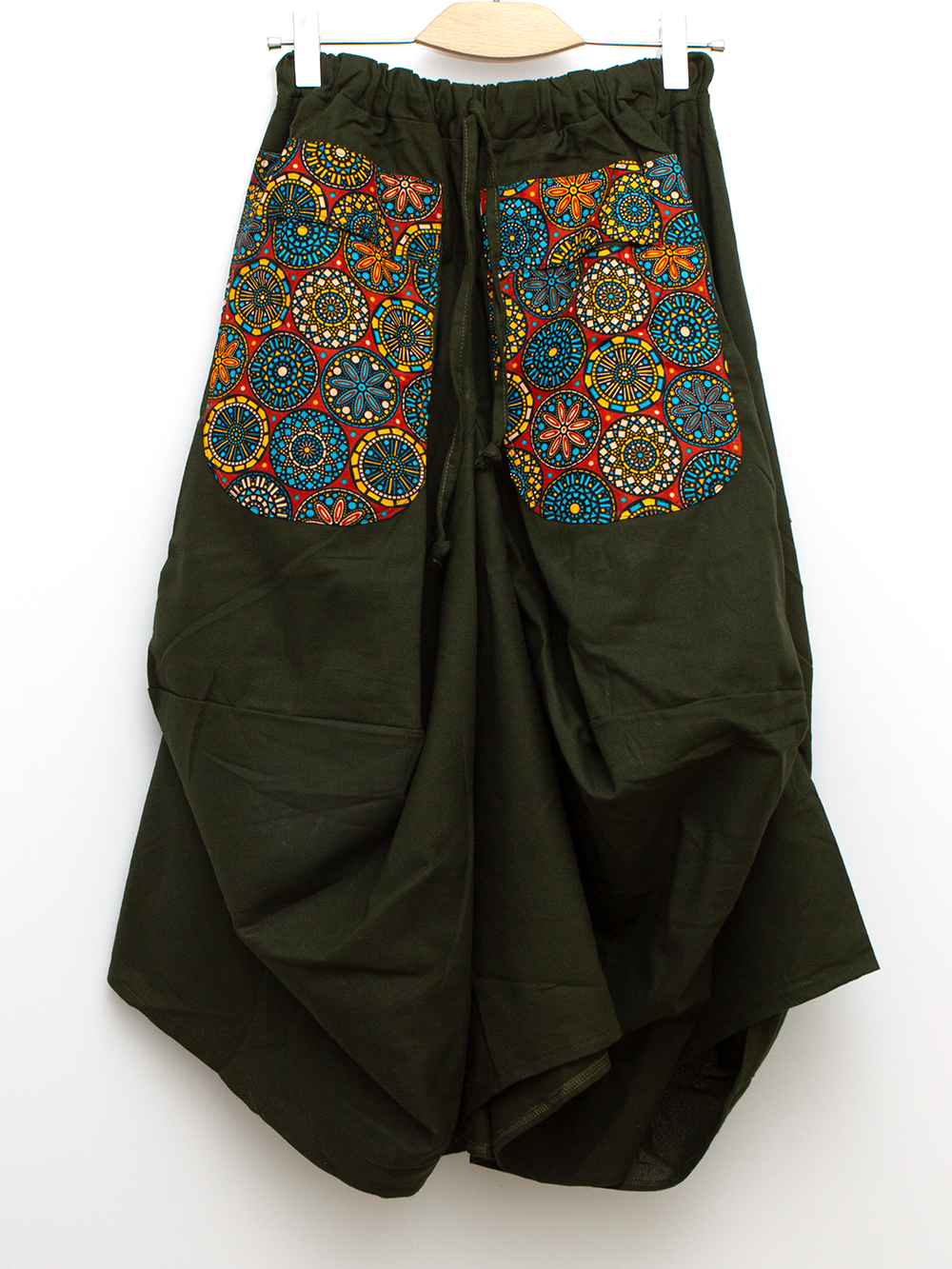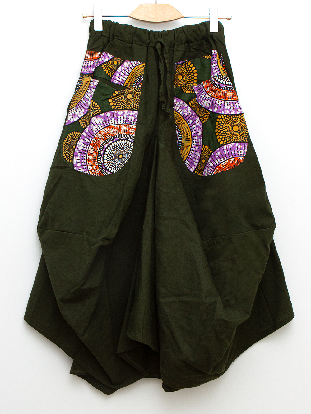 Свободный размер 42-52 (спереди у модели пояс, сзади резинка).