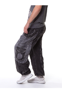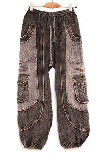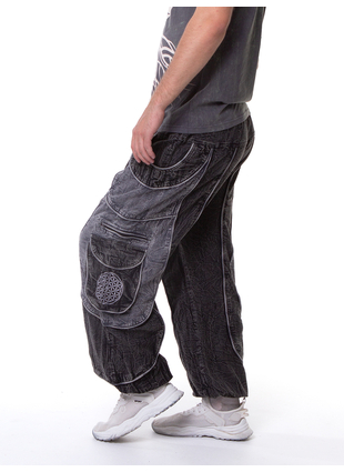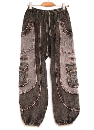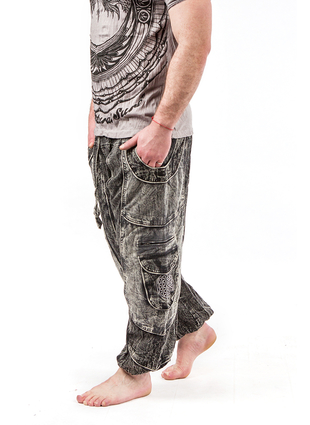 На поясе - эластичная резинка, благодаря которой штаны имеют свободный размер.