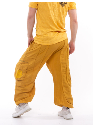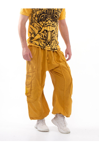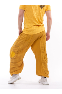 На поясе - эластичная резинка, благодаря которой штаны имеют свободный размер.