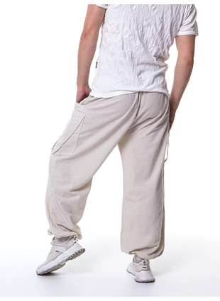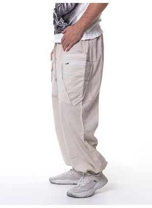 На поясе - эластичная резинка, благодаря которой штаны имеют свободный размер.