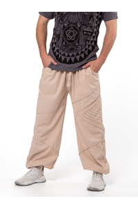 На поясе - эластичная резинка, благодаря которой штаны имеют свободный размер.
