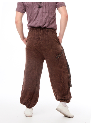 На поясе - эластичная резинка, благодаря которой штаны имеют свободный размер.