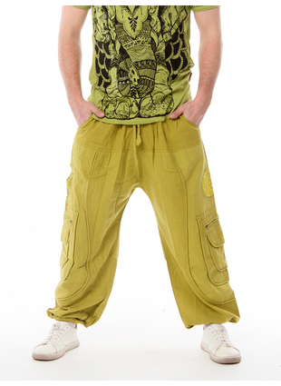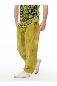 На поясе - эластичная резинка, благодаря которой штаны имеют свободный размер.