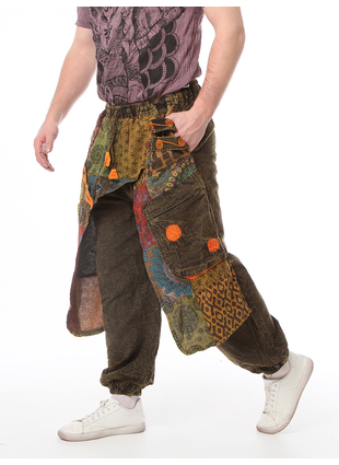 На поясе - эластичная резинка, благодаря которой штаны имеют свободный размер.