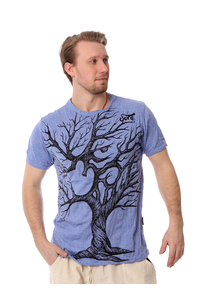 Мужская футболка "Дерево Ом штрих" серо-голубая