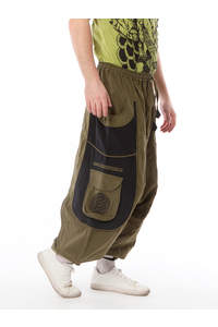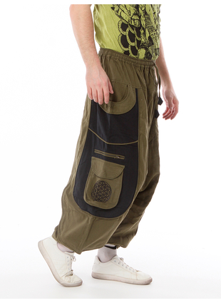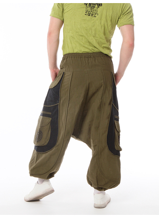 Один карман внутренний (где кружок ткани - вход в карман) и один наружний на молнии.