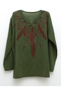 Мужская рубашка "Перья" темно-зеленая