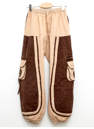 На поясе - эластичная резинка, благодаря которой штаны имеют свободный размер.