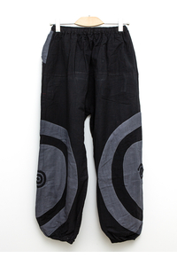 На поясе - эластичная резинка, благодаря которой штаны имеют свободный размер.