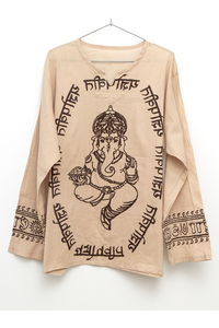 Мужская рубашка "Ганеша мантра" ДР бежевая