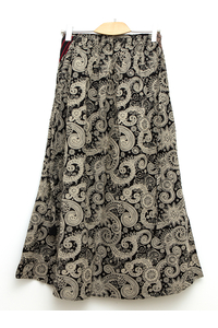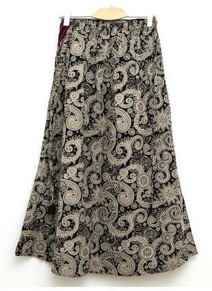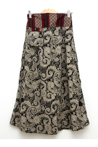 На поясе спереди вставка из декоративного гобелена, сзади - эластичная резинка, благодаря которой юбка имеет свободный размер.