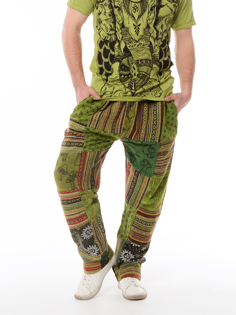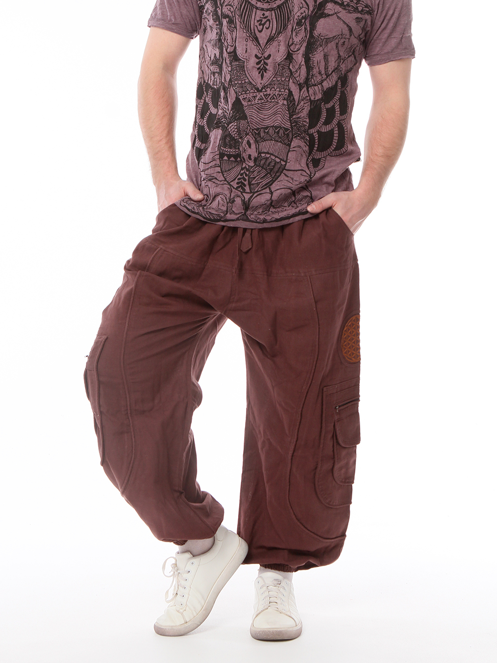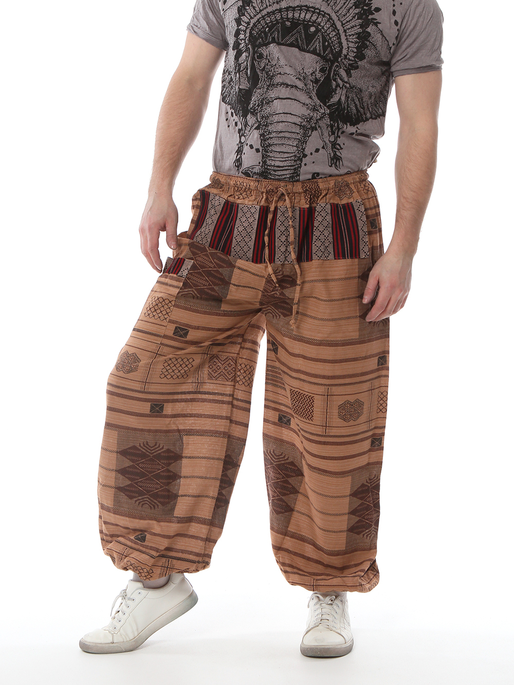 На поясе - эластичная резинка, благодаря которой штаны имеют свободный размер.