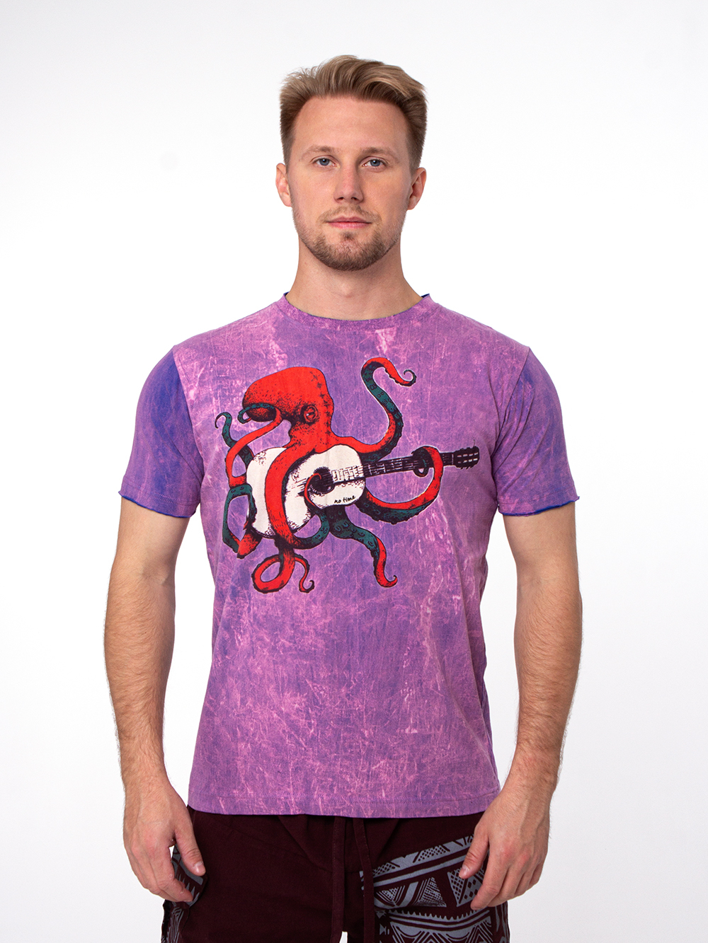 Мужская футболка "Осьминог-гитарист" сиреневая