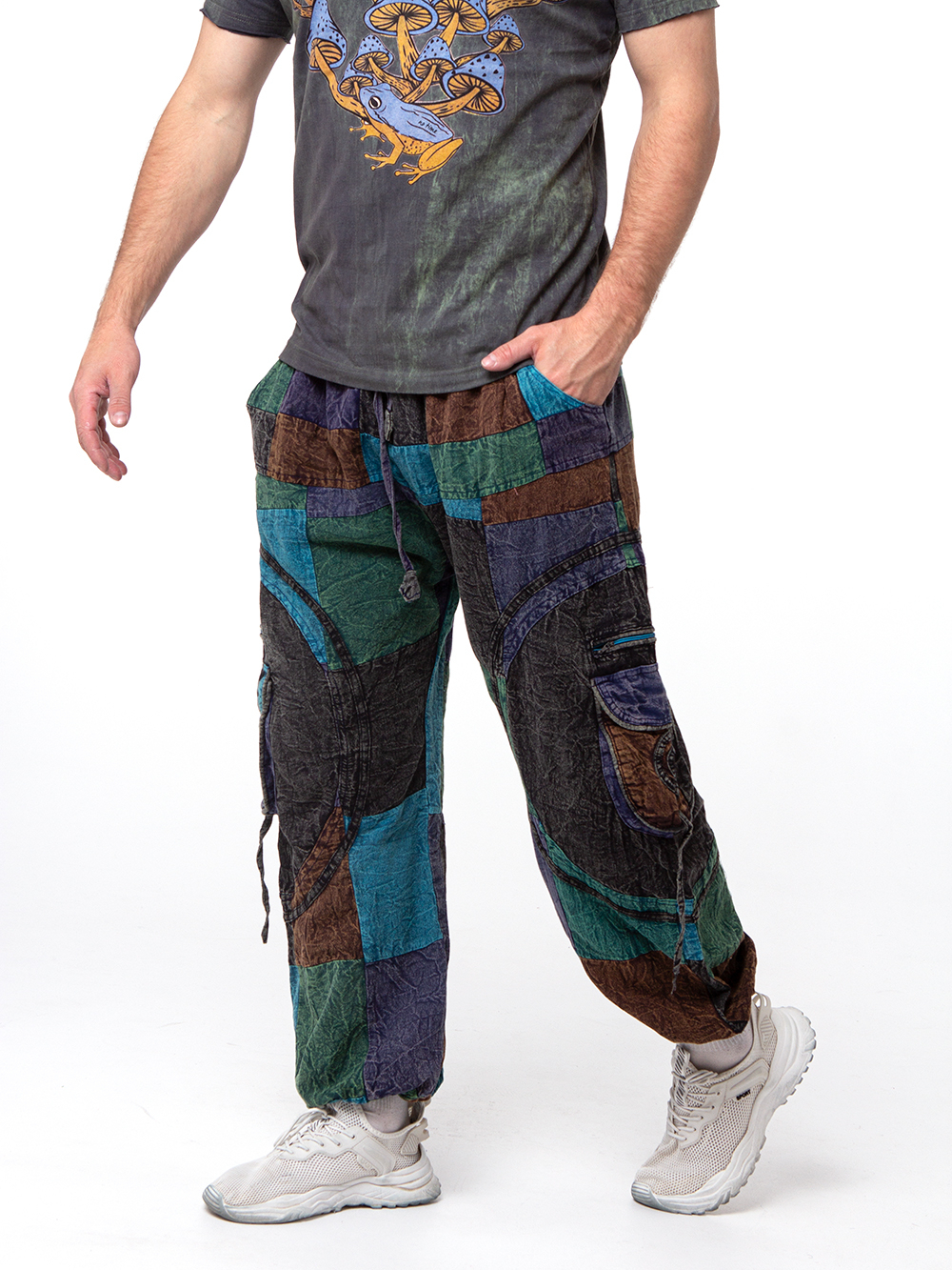 На поясе - эластичная резинка, благодаря которой штаны имеют свободный размер.