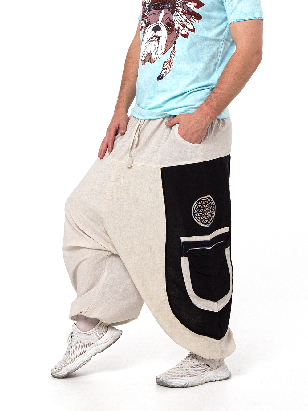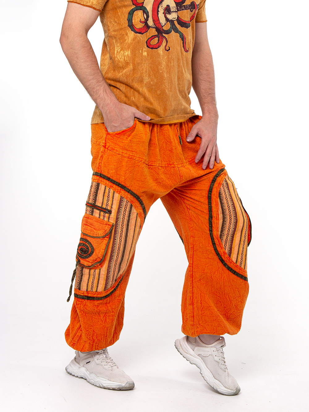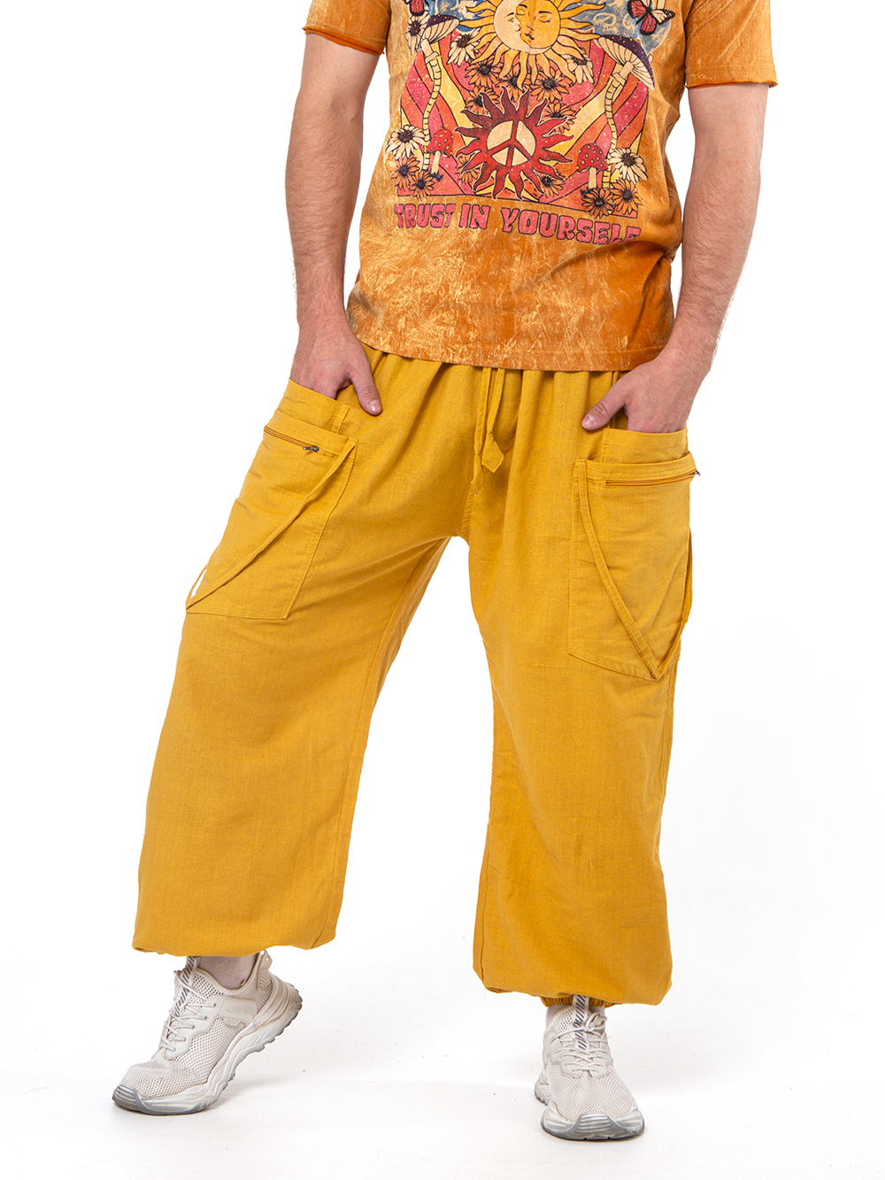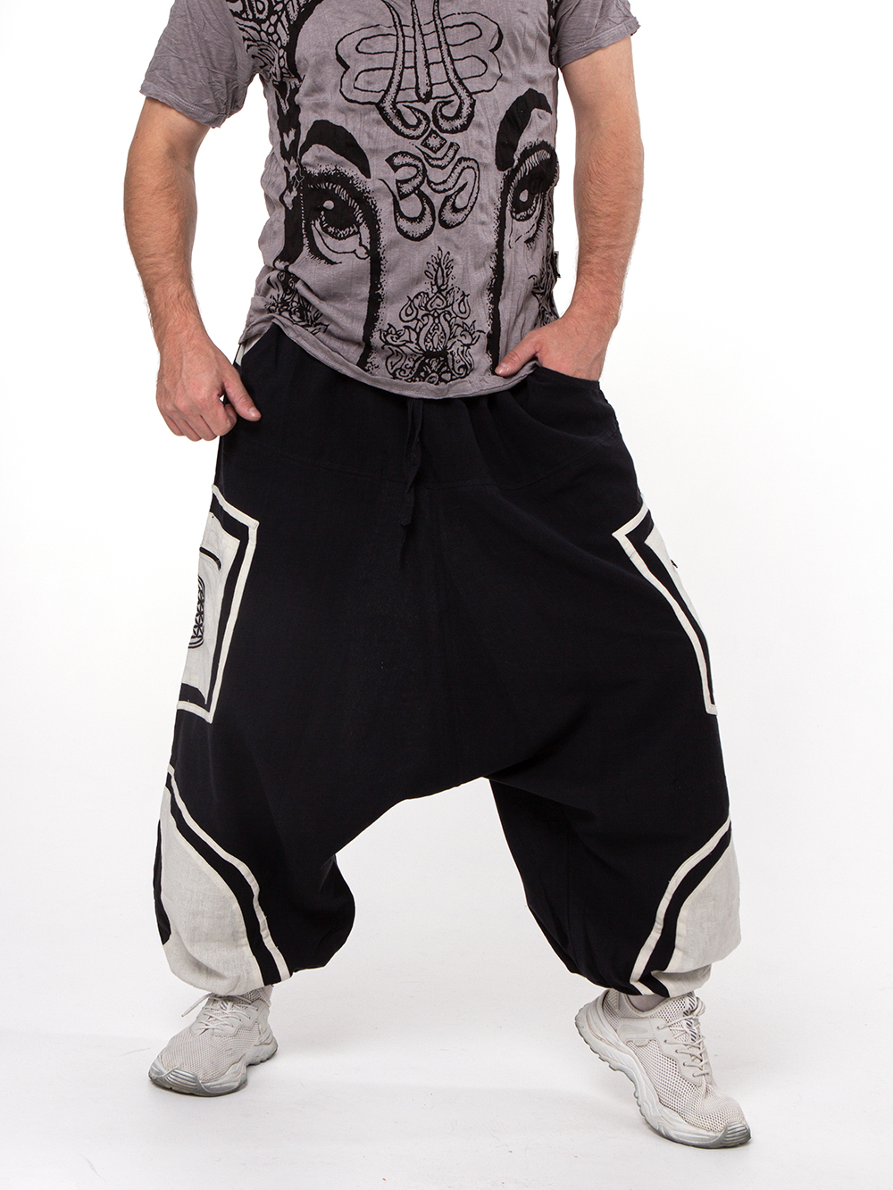 На поясе - эластичная резинка, благодаря которой штаны имеют свободный размер.