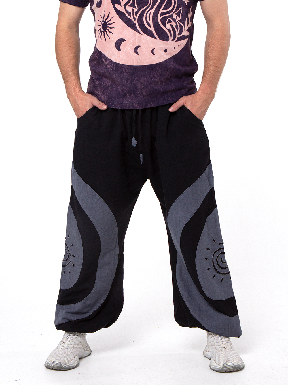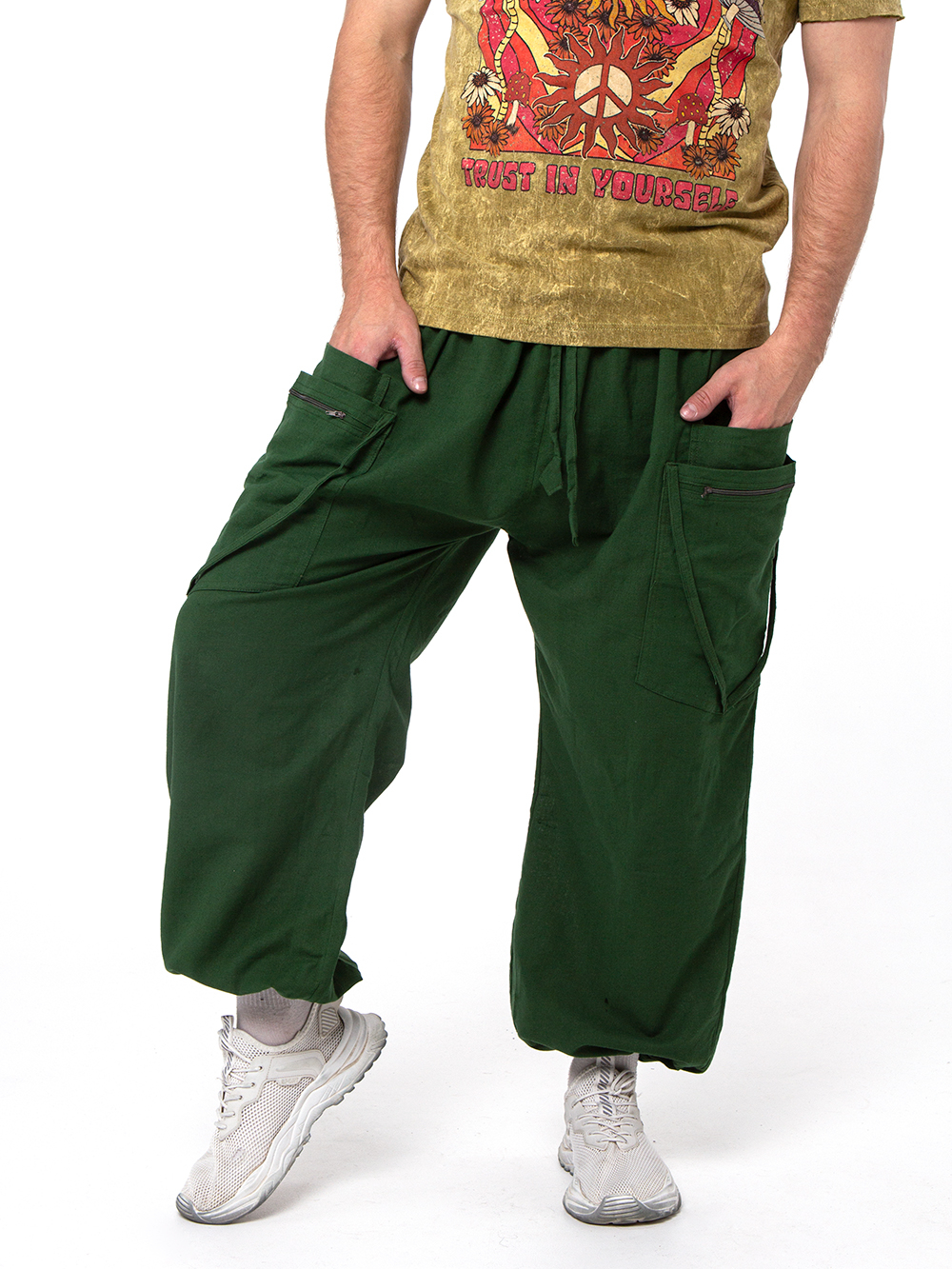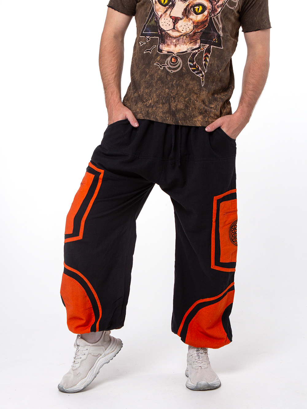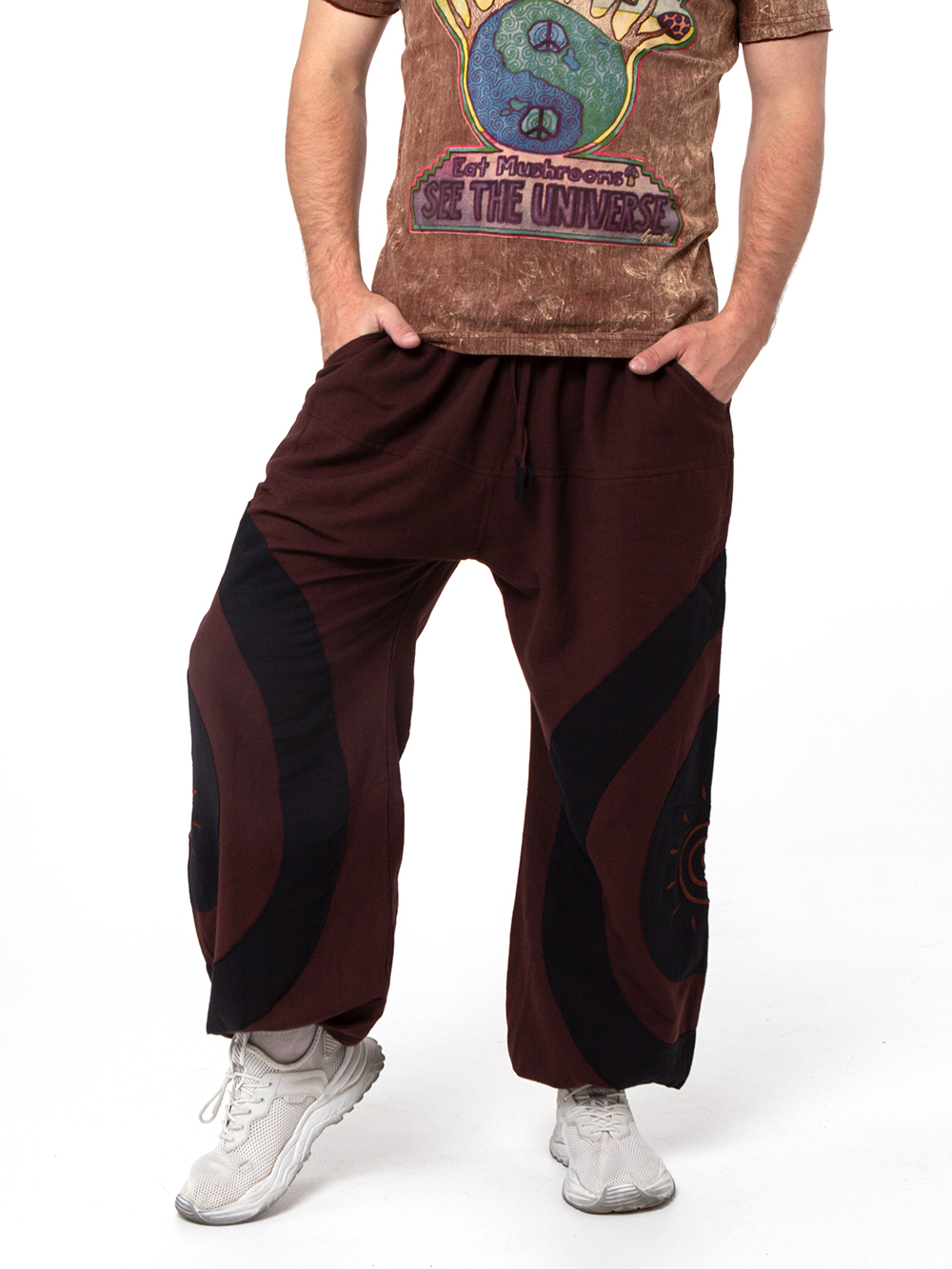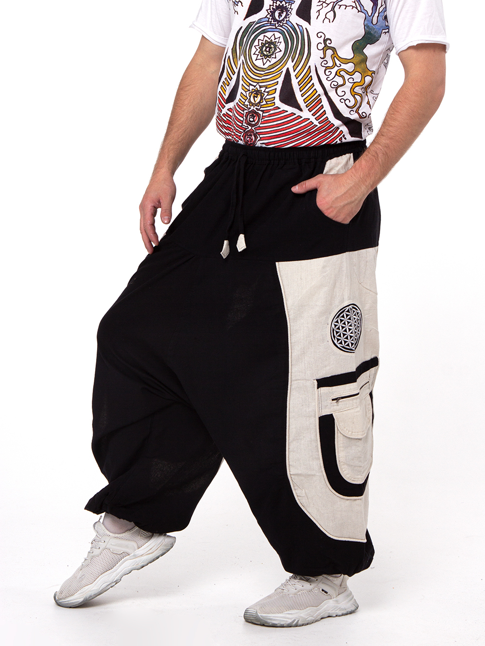На поясе - эластичная резинка, благодаря которой штаны имеют свободный размер.