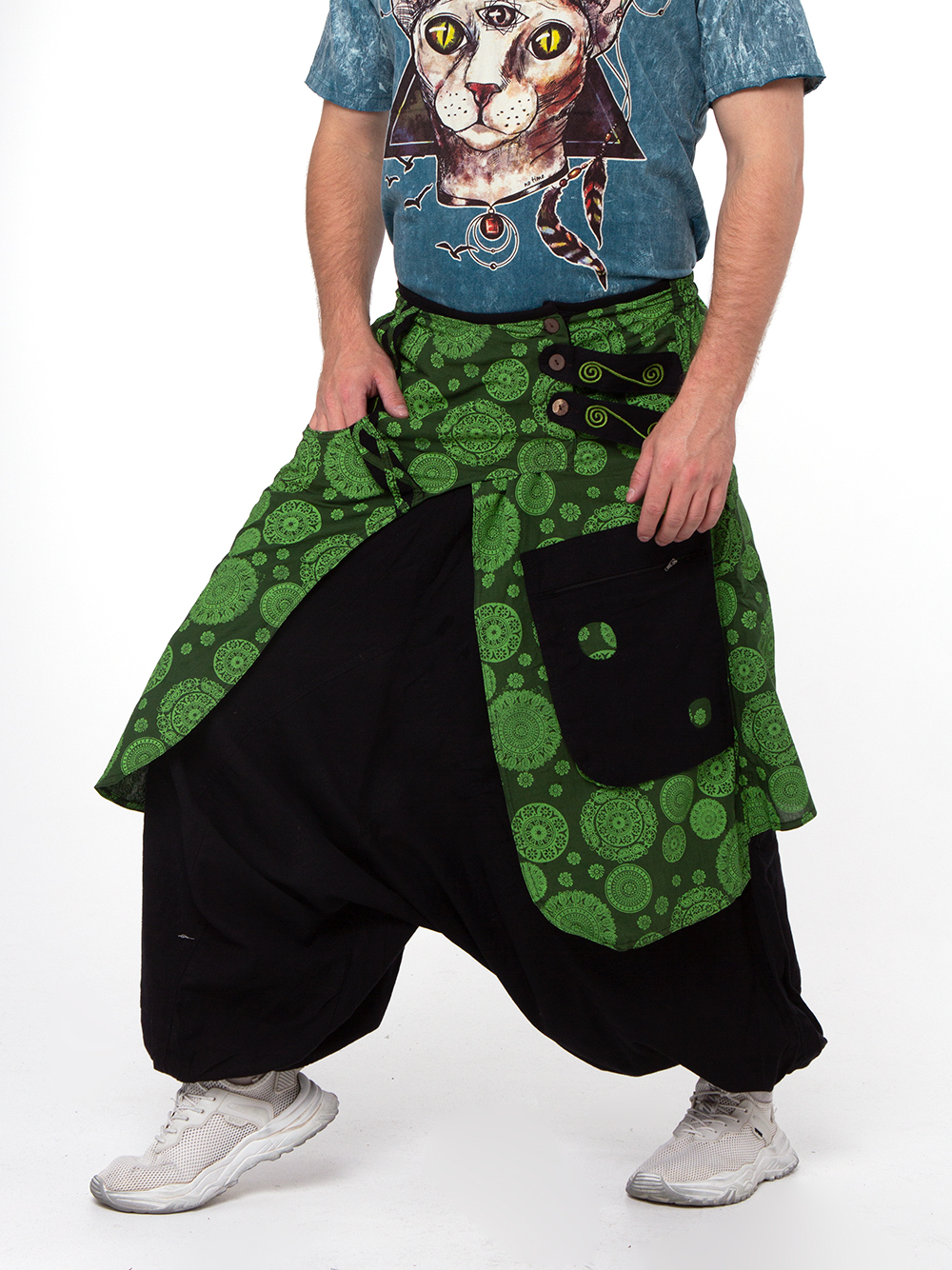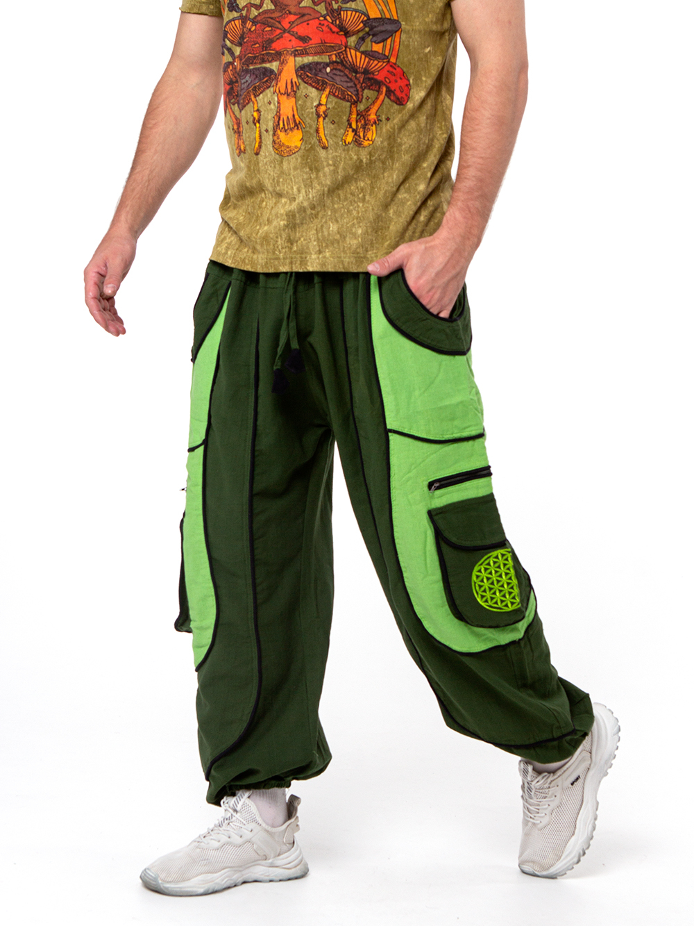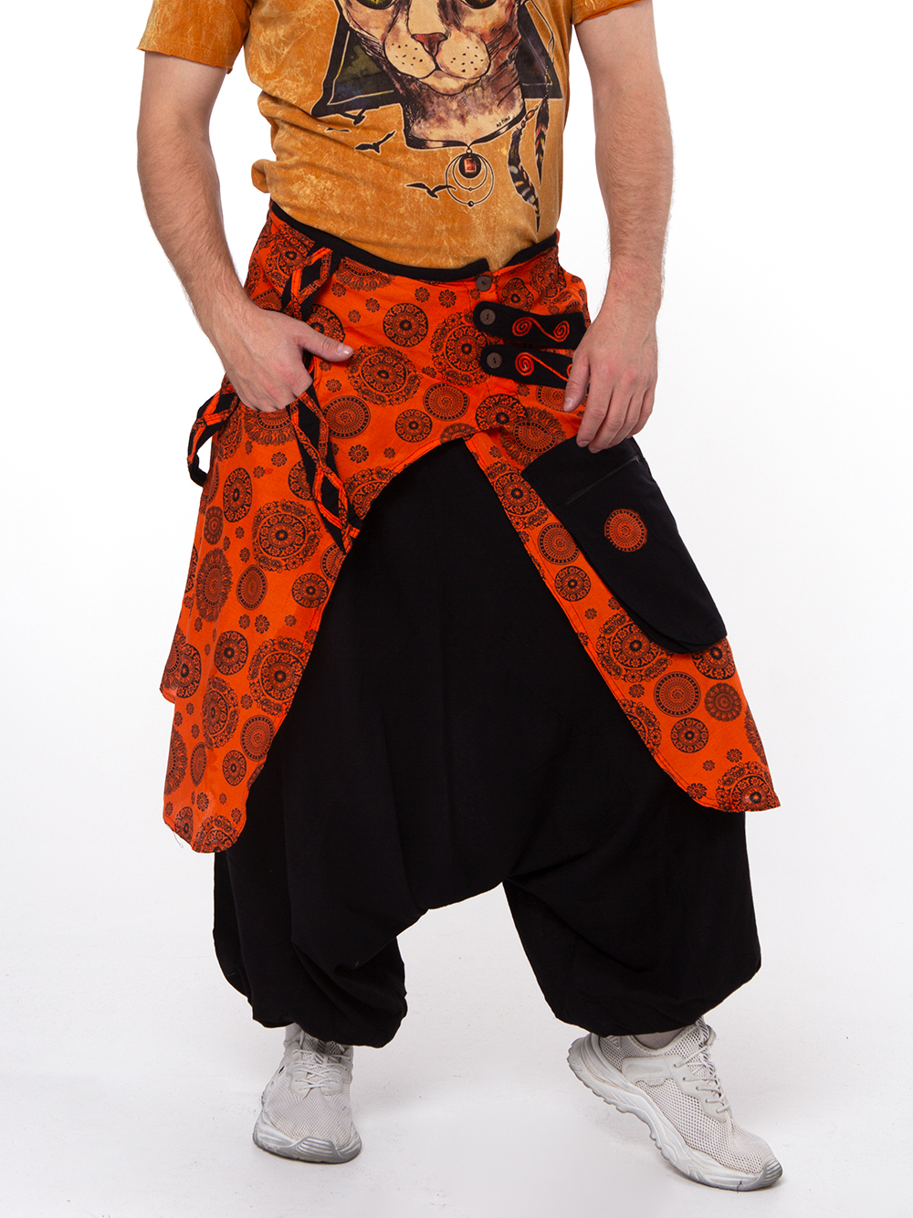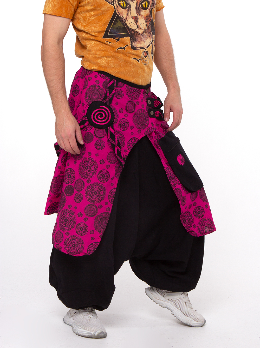 На поясе - эластичная резинка, благодаря которой штаны имеют свободный размер.