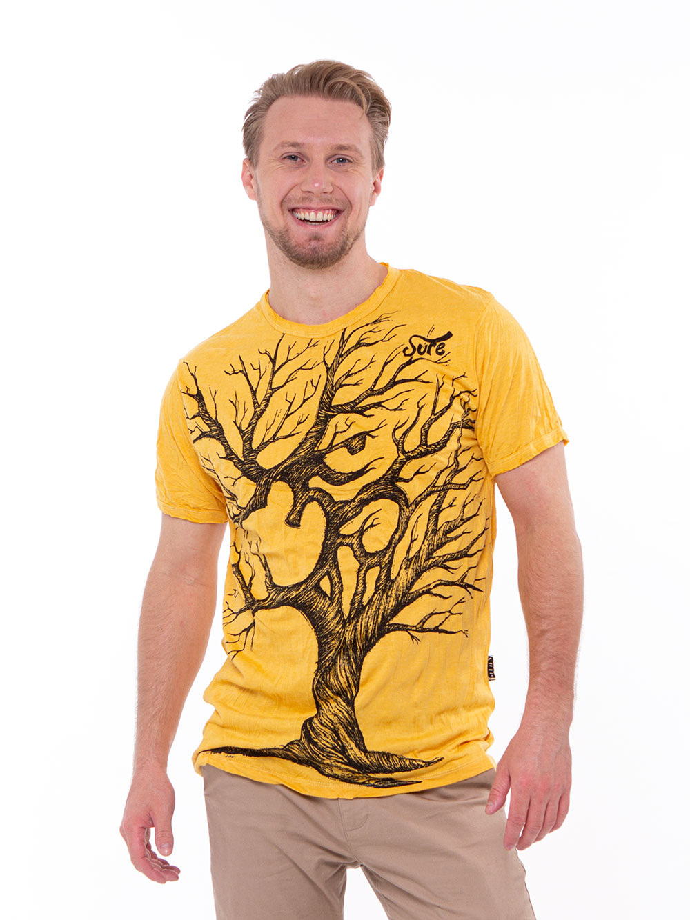 Мужская футболка "Дерево Ом штрих" желтая