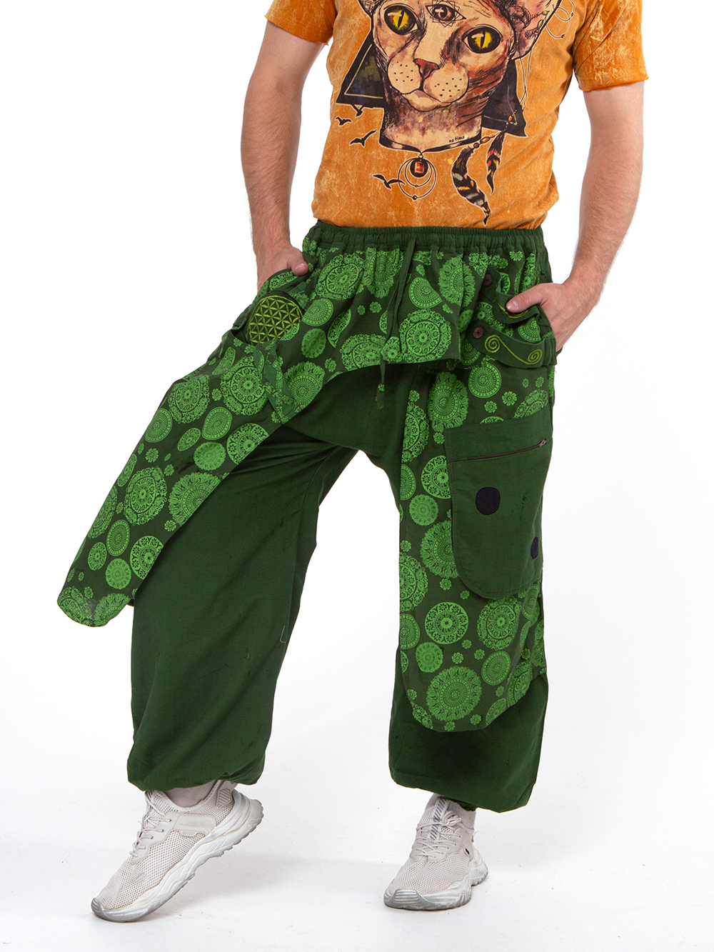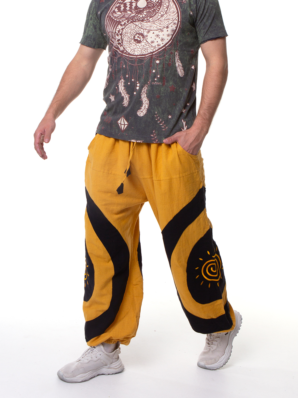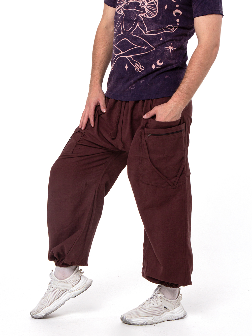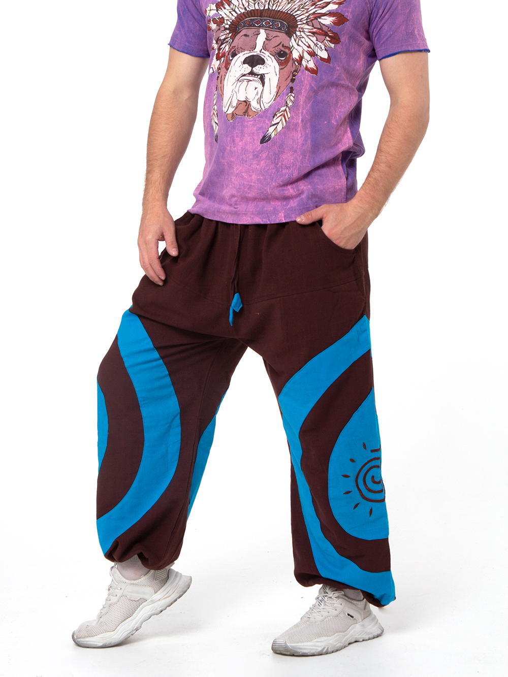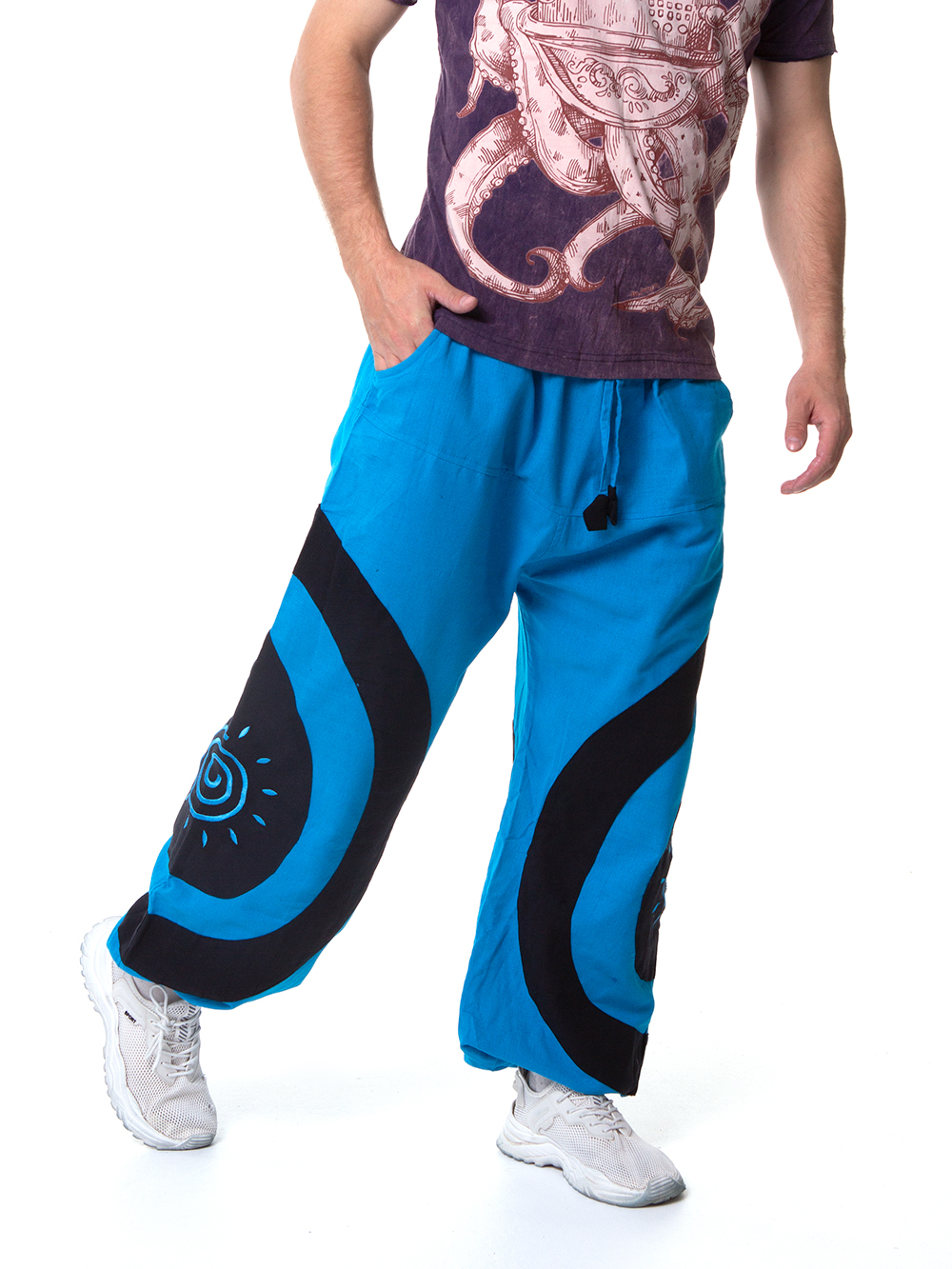 На поясе - эластичная резинка, благодаря которой штаны имеют свободный размер.